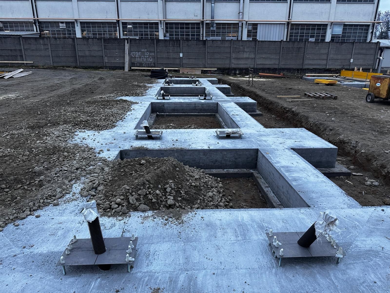 realizzazione di fondazioni, pilastri e muri in cemento armato, progettati per assicurare